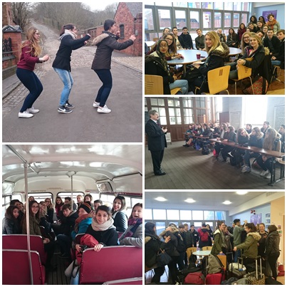Visite du musée du pays noir. Un village reconstitué où les bâtiments réels ont été reconstruits brique par brique afin d'exposer la vie des travailleurs de la mine. Beaucoup de groupes visitent également ce musée, donc nous avons dû attendre à l'entrée des vieilles boutiques. Les élèves ont apprécié prendre des photos avec les employés et les bénévoles vêtus du costume traditionnel. La partie la plus appréciée était certainement le vieux magasin de jouets avec les corde à sauter, les tasses et jeux de ballon, et la « roue de métal ». 16:00: Retour à l'école. Derniers achats dans un petit centre commercial à Solihull puis diner avec les enseignants et les correspondants à « Jimmy Spices ». Nous avons donné aux étudiants les recompenses pour le concours de photo. 1: Alexandre et Charlie, 2: Salomé et Zoé, 3: Nathan et Brandon, 4: Margot et Emily Nous avons beaucoup rigolé et applaudi les gagnants. Diner terminé rapidement parce que les étudiants vivaient assez loin et ils voulaient passer leurs dernière soirée tous ensemble pour se dire au revoir! Nous sommes rentrés pour faire nos valises. Demain, nous partons à 9h.